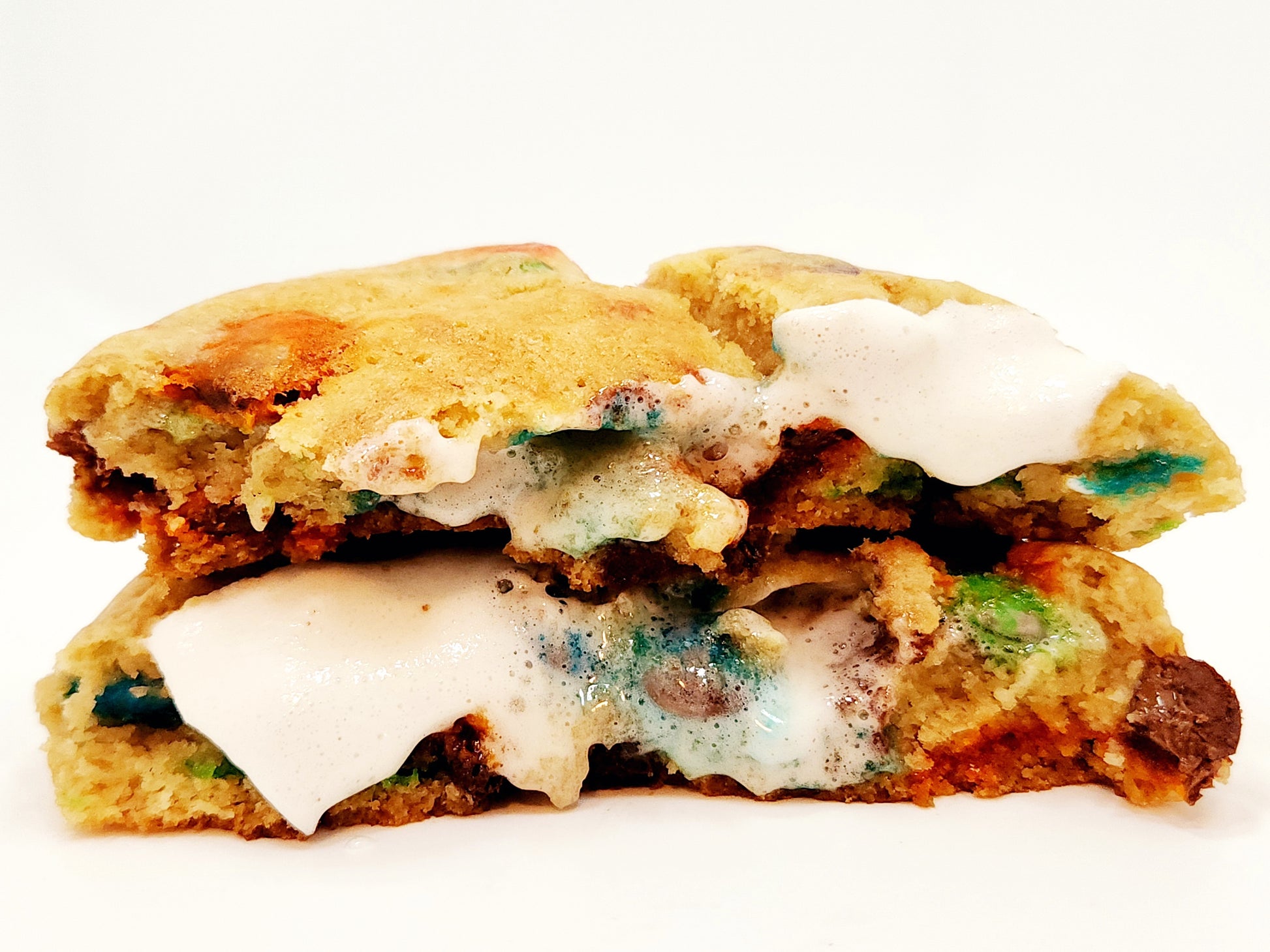 Galleta de M&M con chispas de chocolate, rellena de un sabroso mashmallow.